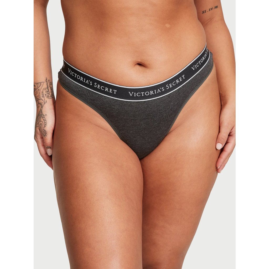 Victoria's Secret Charcoal Grey tanga s logem na gumě Old School Logo