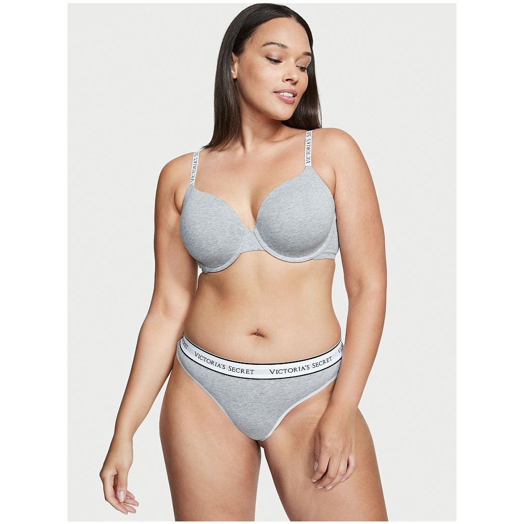 Victoria's Secret Grey tanga s logem na gumě Old School Logo