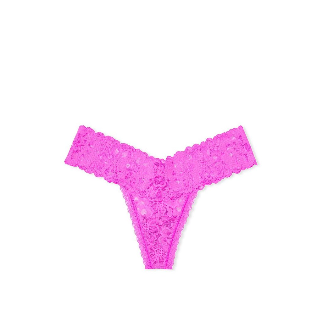 Victoria's Secret luxusní Electric Pink celokrajková tanga Floral Lace Thong Panty