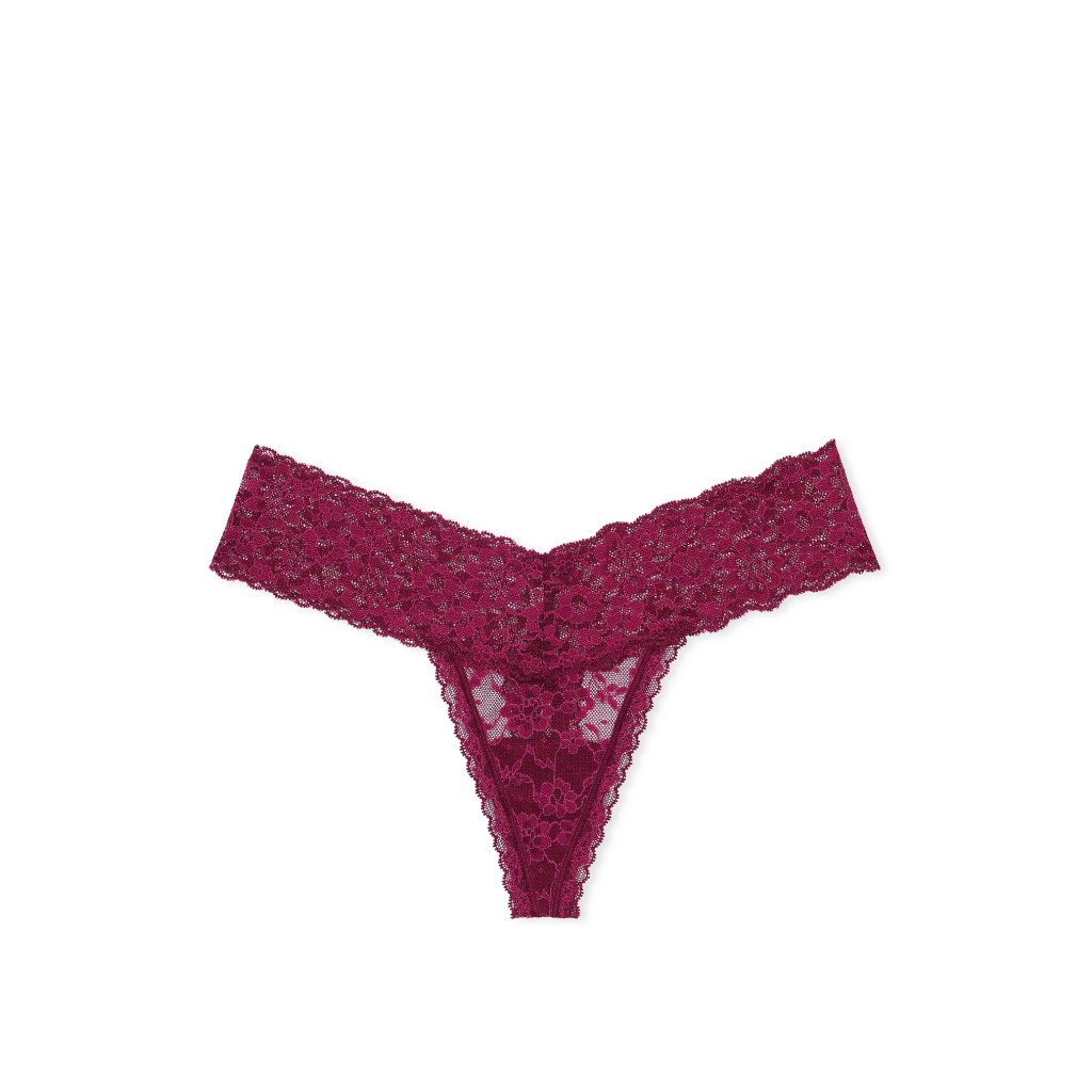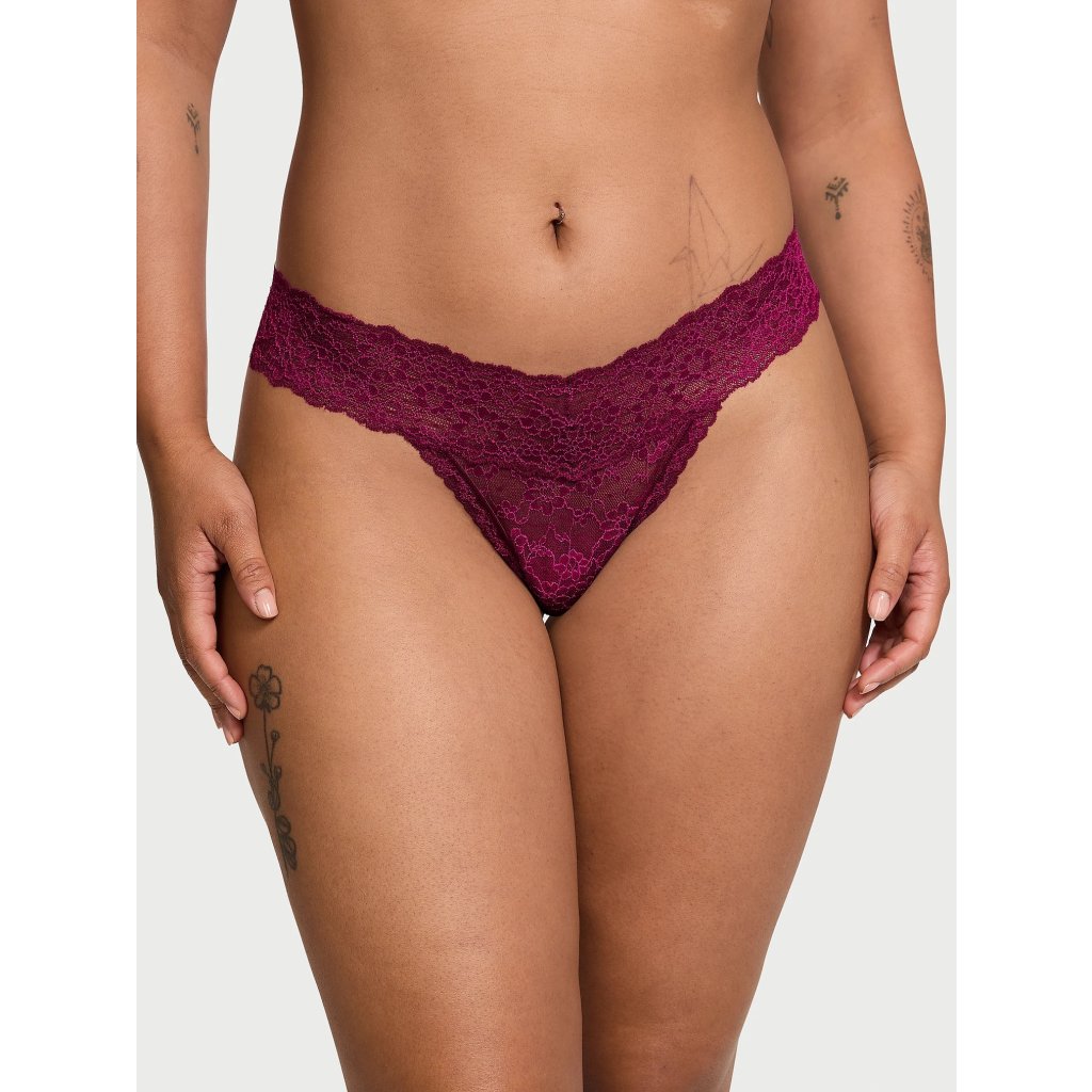 Victoria's Secret luxusní Plum Rouge celokrajková tanga Lace Thong Panty