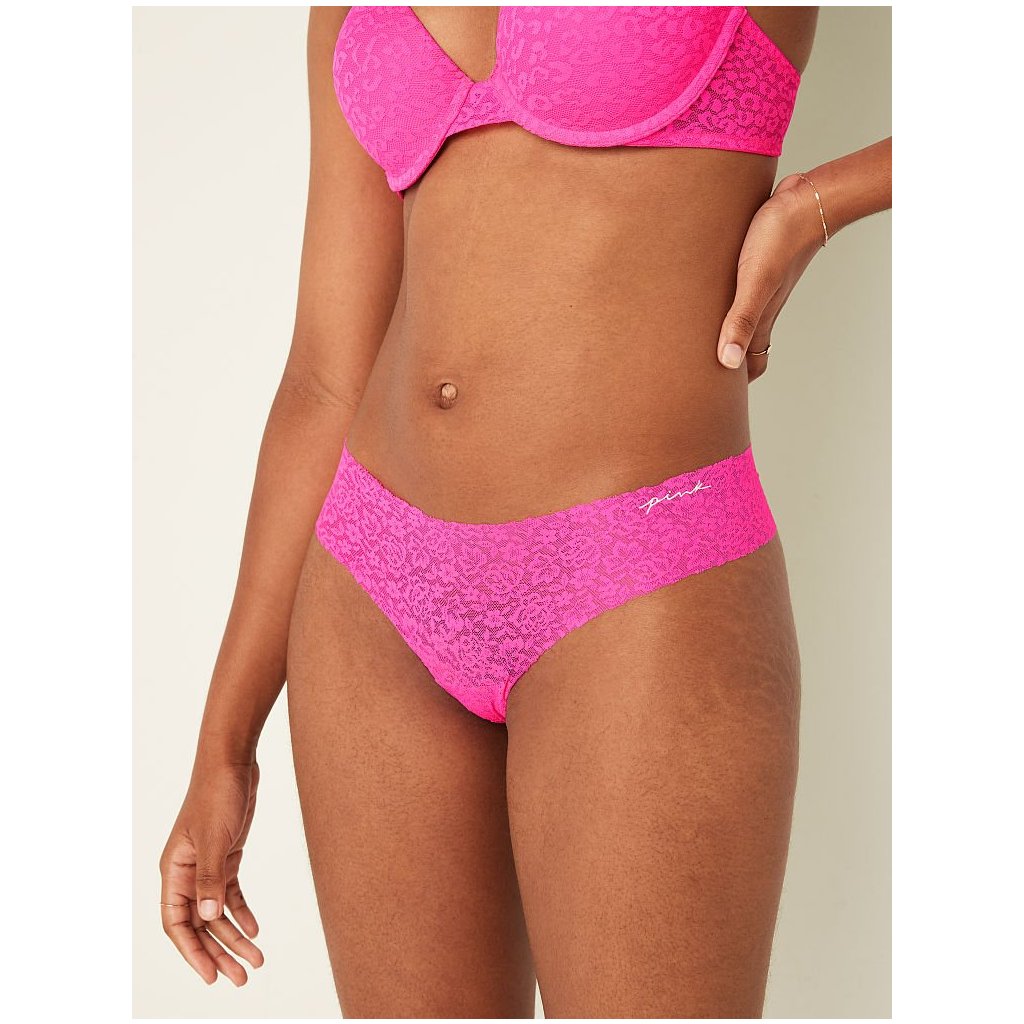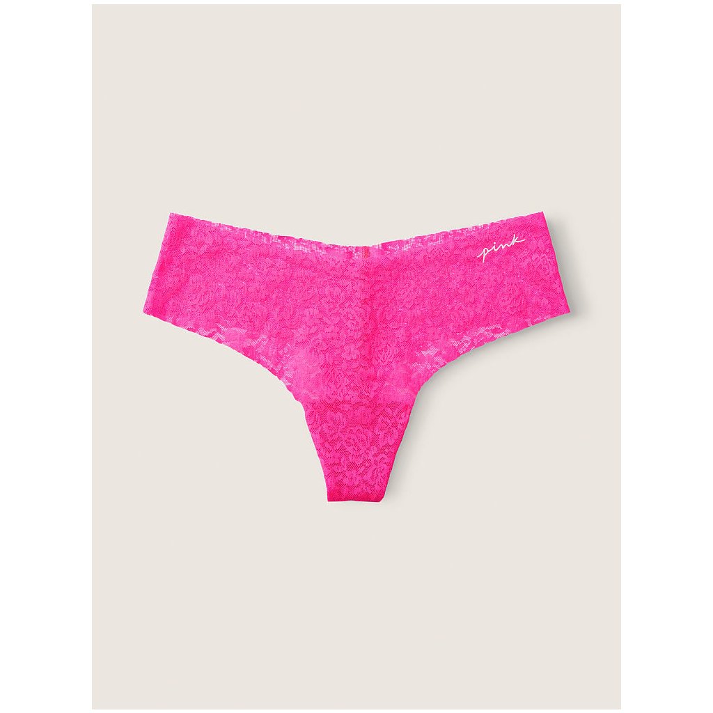 Victoria's Secret PINK Atomic PINK bezešvá krajková tanga No Show Soft Lace Thong Panty