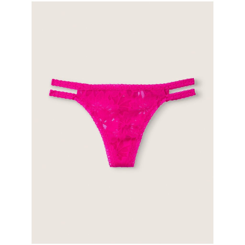 Victoria's Secret PINK fuchsiová krajková tanga Lace Strappy Thong