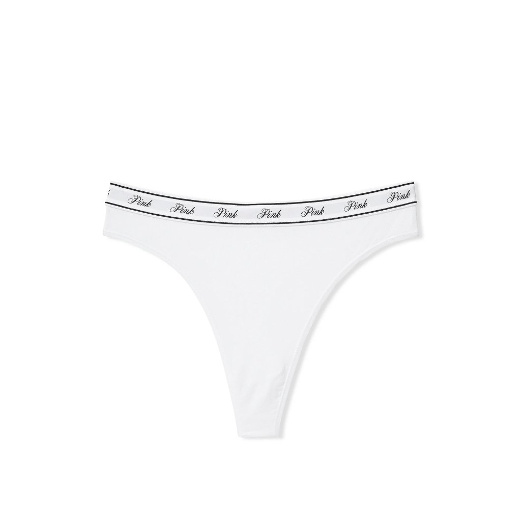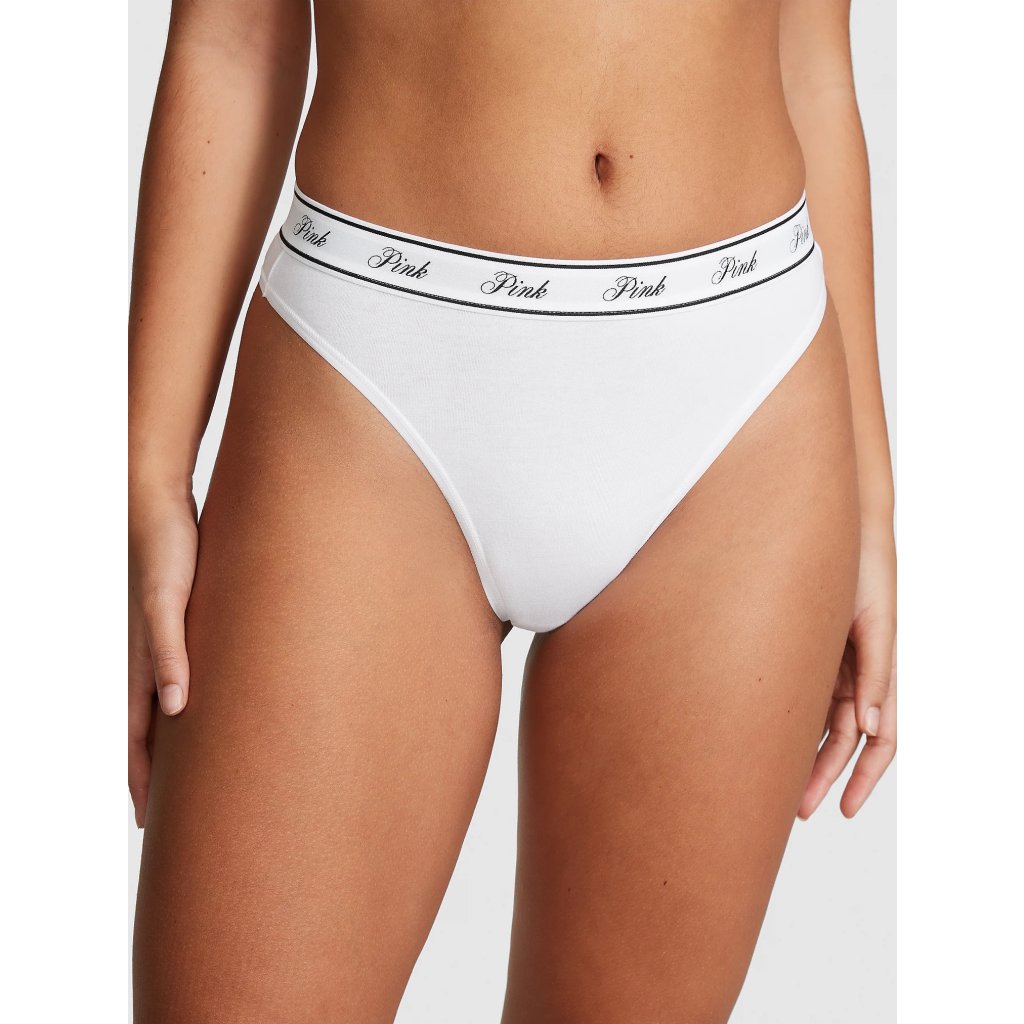 Victoria's Secret PINK White bavlněná tanga s logem na gumě High Waist