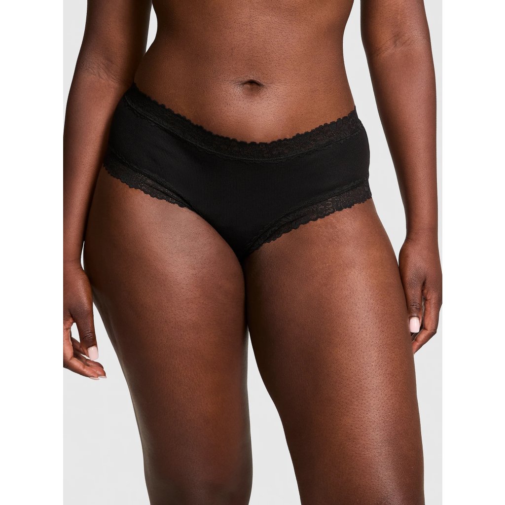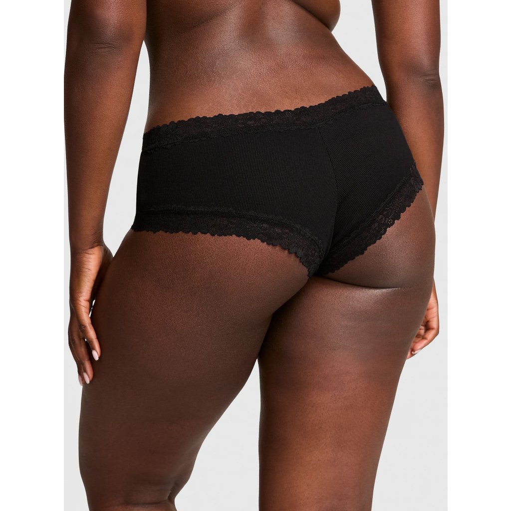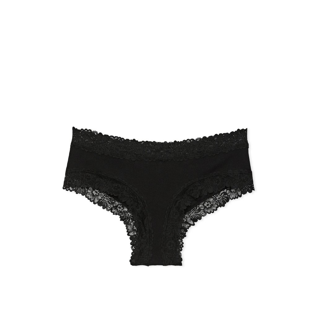 Victoria's Secret Black Wink Lace - Trim Cotton brazilské kalhotky