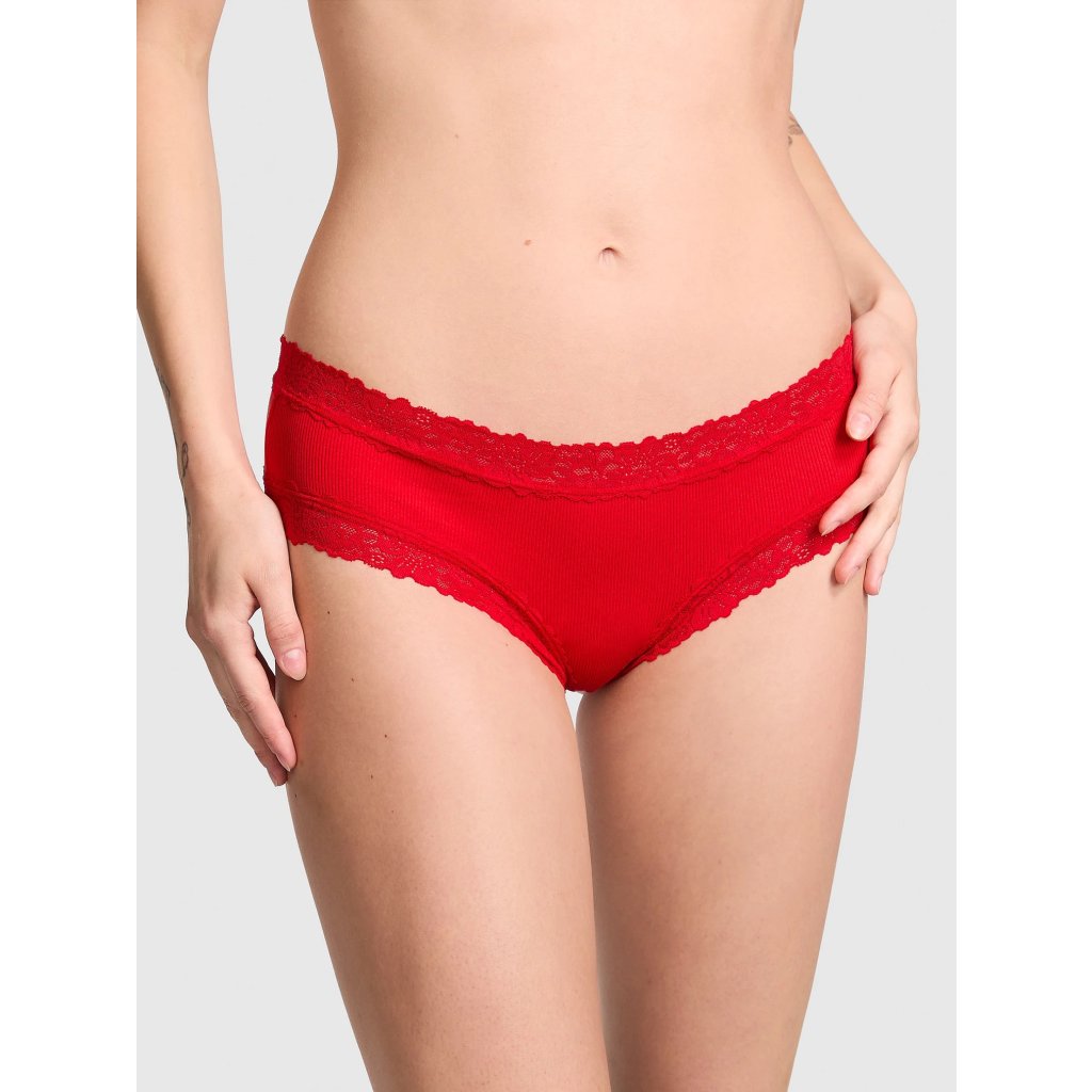 Victoria's Secret Red Wink Lace - Trim Cotton brazilské kalhotky