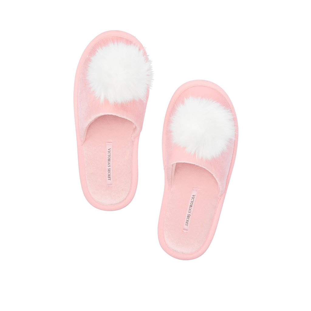 Luxusní dámské pantofle od značky Victoria's Secret v růžovém provedení s bambulkou.