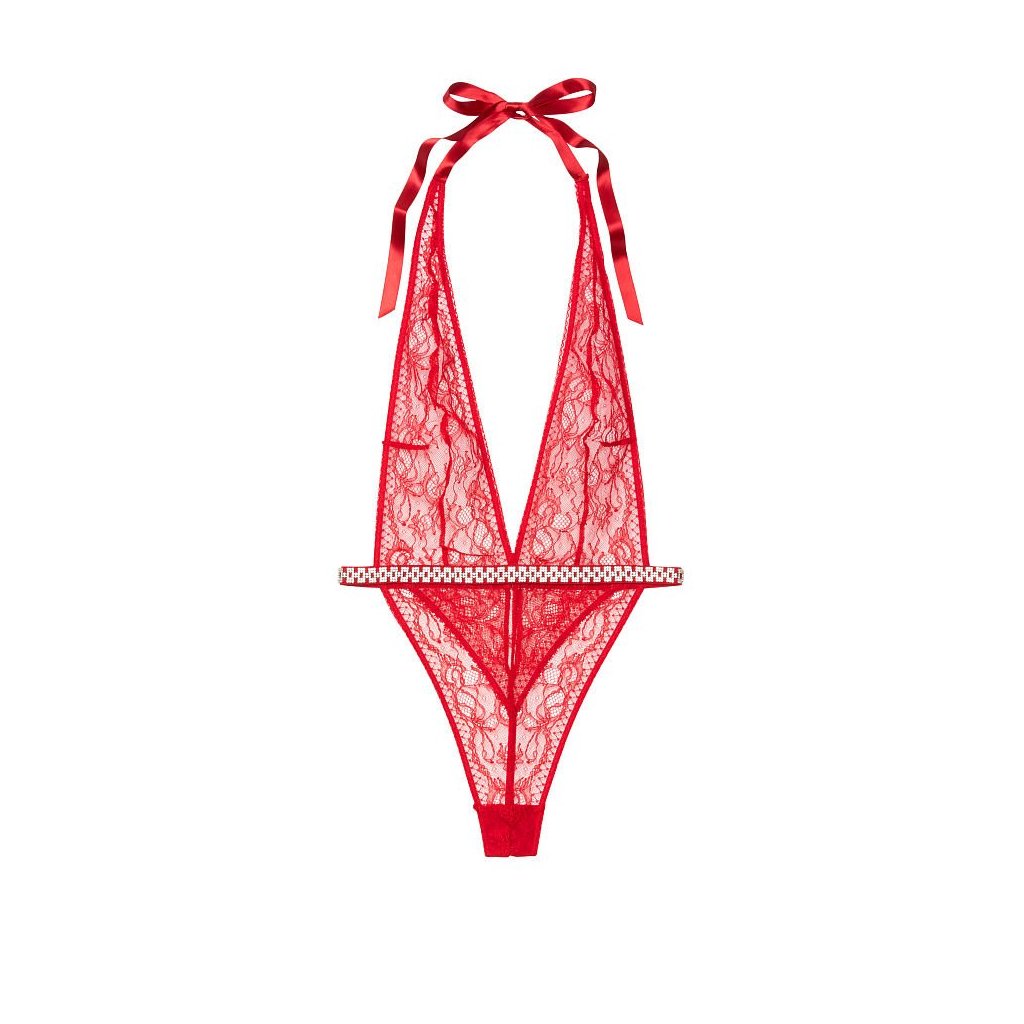 Victoria's Secret červené sexy krajkové body s luxusními kamínky